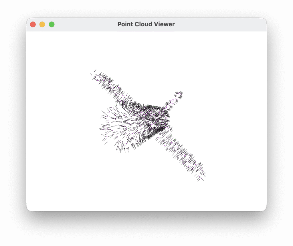 Points are sampled uniformly from mesh surfaces using trimesh, which also provides face normals at each sample location — precisely the tangent bundle information discussed in the previous section. Each cloud contains 2048 points, stored as a binary PLY file with six properties per vertex: x y z nx ny nz.